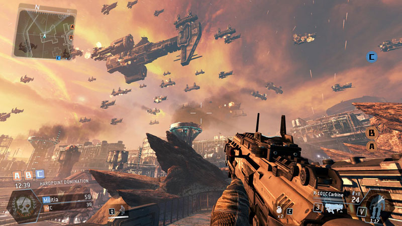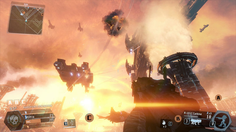 "The Battle of Demeter" is the finale level in Titanfall's Campaign Multiplayer. The level was mostly designed and built when I joined Respawn, so my first task was to script the level gameplay and the epic fleet battle raging above.